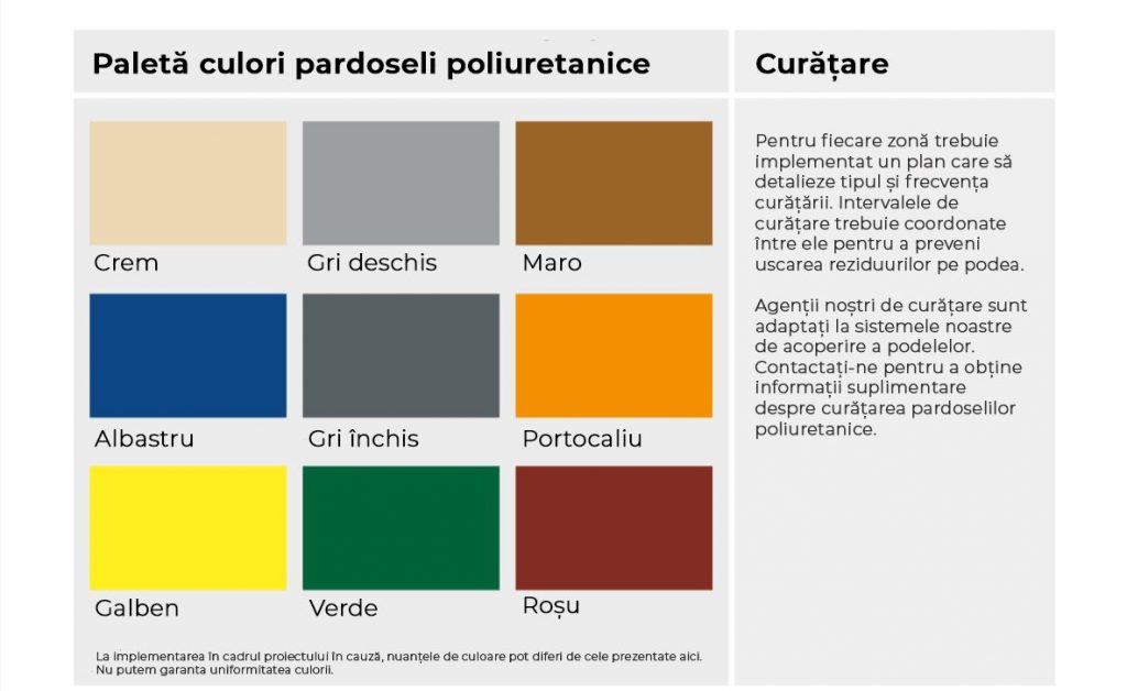În funcție de particularitățile fiecărui proiect, sistemele de pardoseală pot fi selectate astfel încât să răspundă cerințelor tehnice aplicabile privind rezistența la alunecare, comportarea la agenți chimici, solicitările termice și mecanice, precum și cerințele specifice mediilor industriale cu risc crescut de acumulare a prafului.